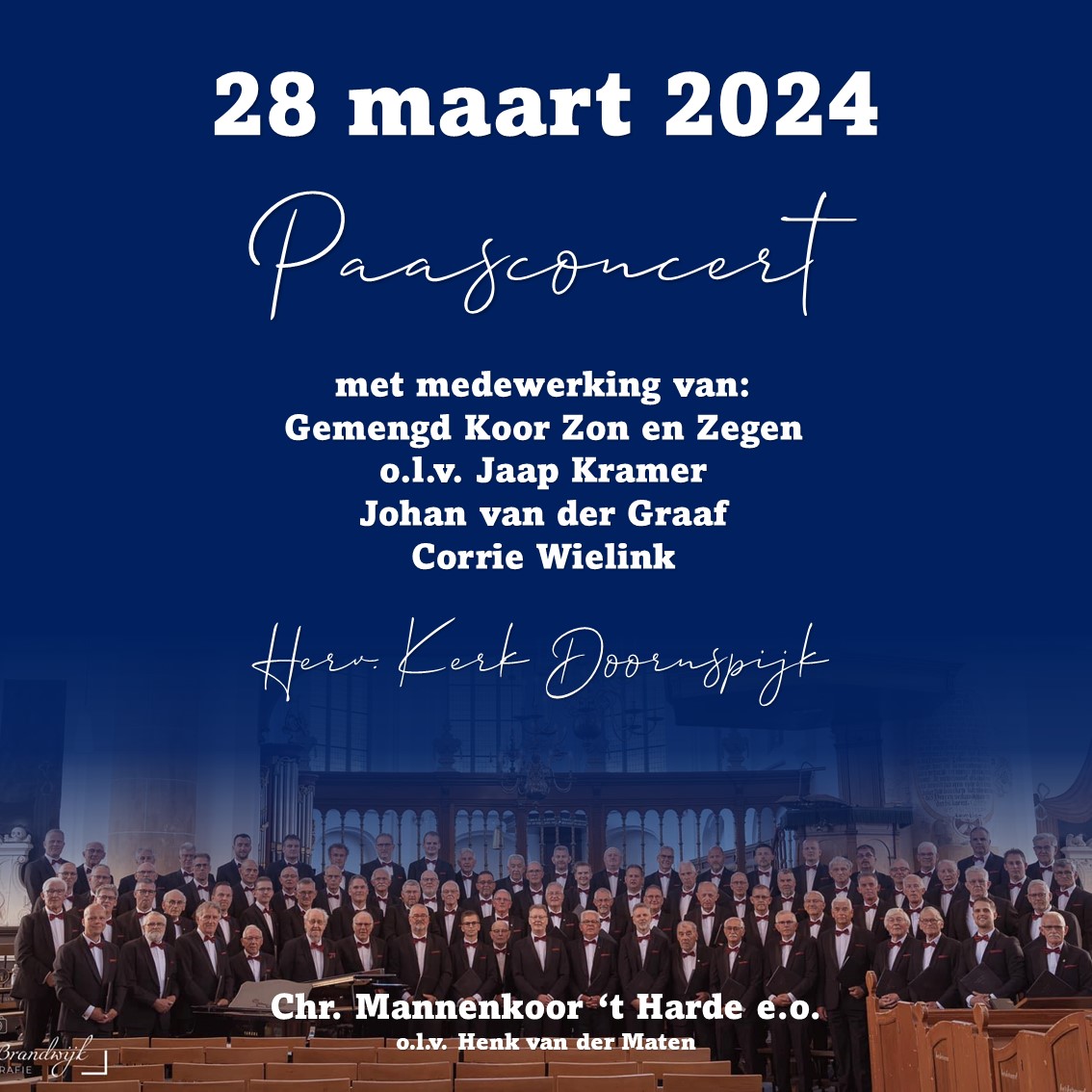 Op donderdag 28 maart organiseert Chr. Mannenkoor ’t Harde e.o. een paasconcert in de Hervormde Kerk van Doornspijk.